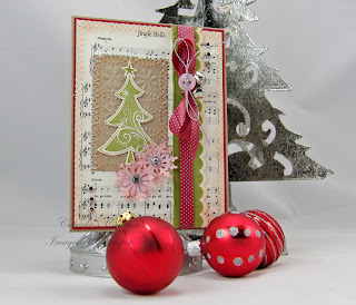 The sheet music DP with that great vintage look around the edges is magical! Add that beautiful stamped tree and ribbon/bells combo and you have a true classic card! This could be your best Christmas card ever! I really love it, Mona! Standout job!